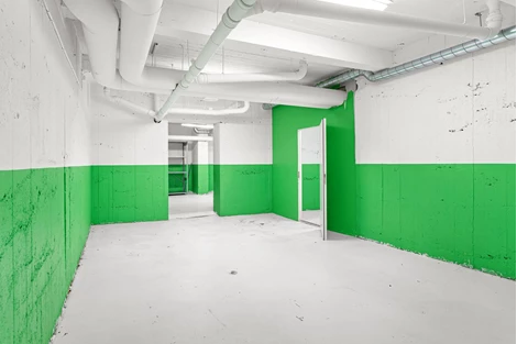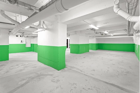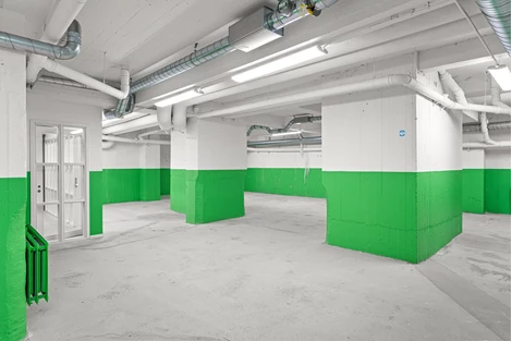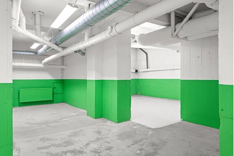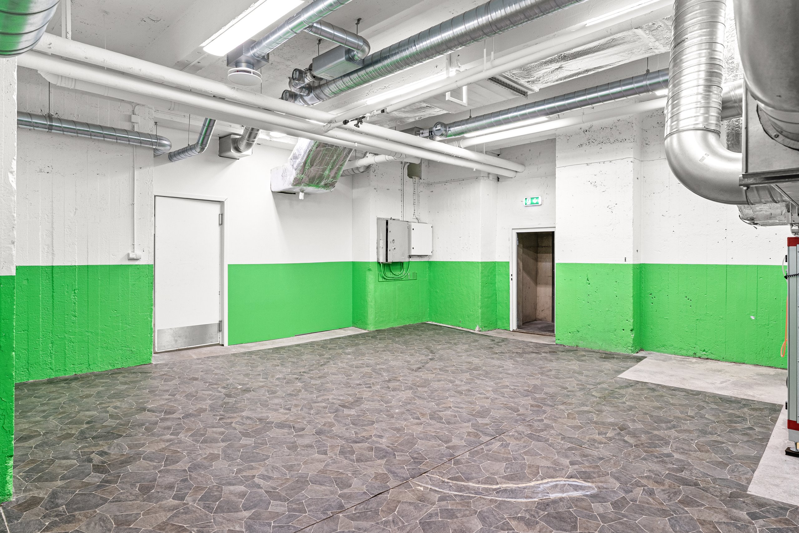 Ej tillgänglig för vanliga personbilar att köra ner i lokalen.
