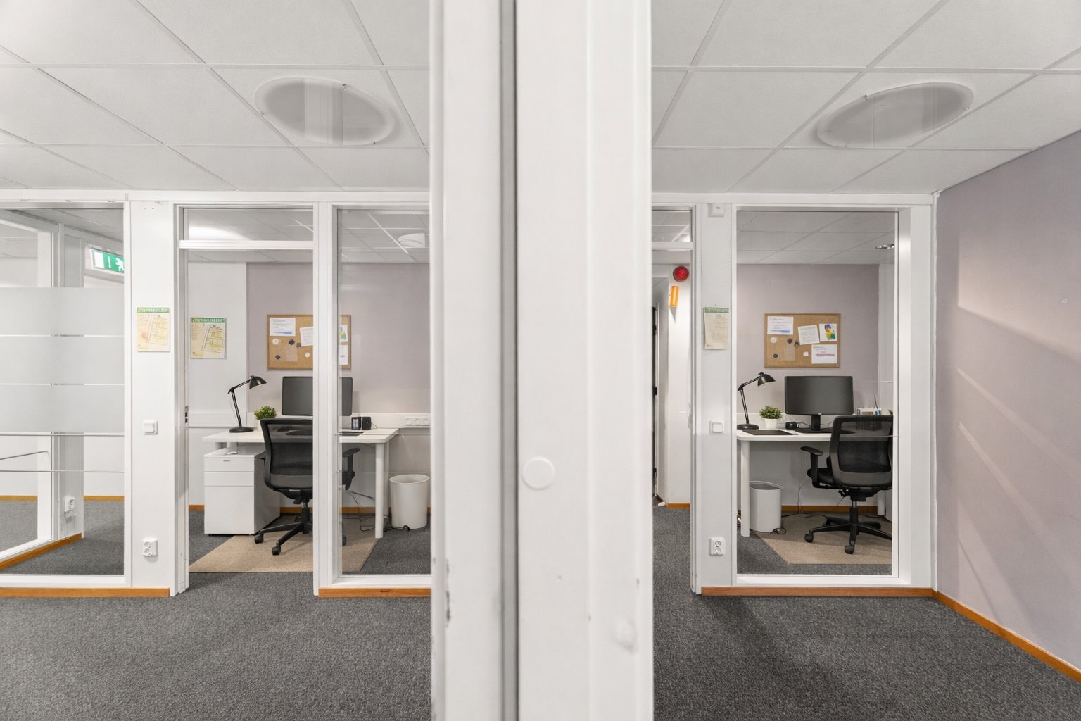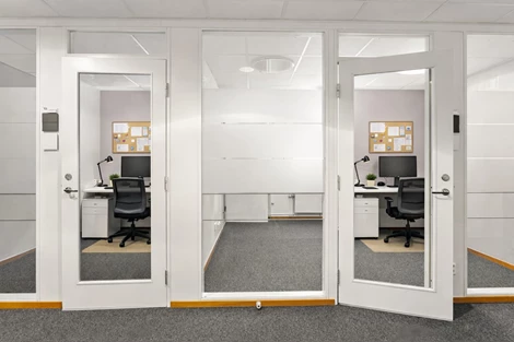 Glasade kontorsrum i rad med flexibel planlosning