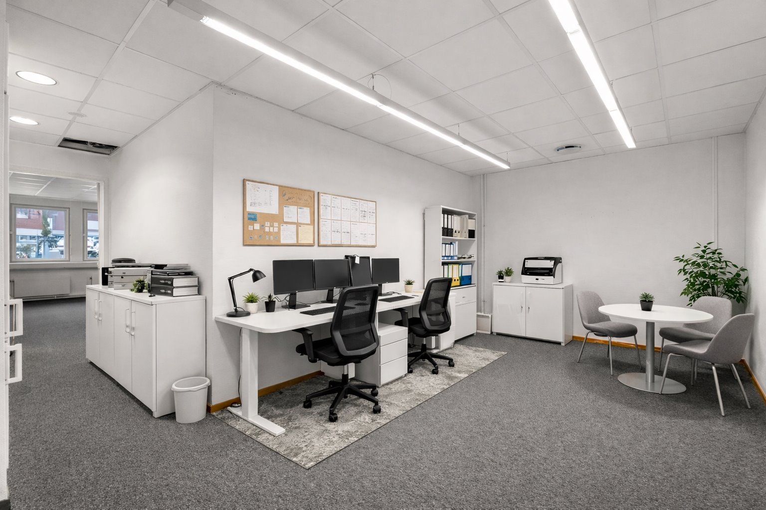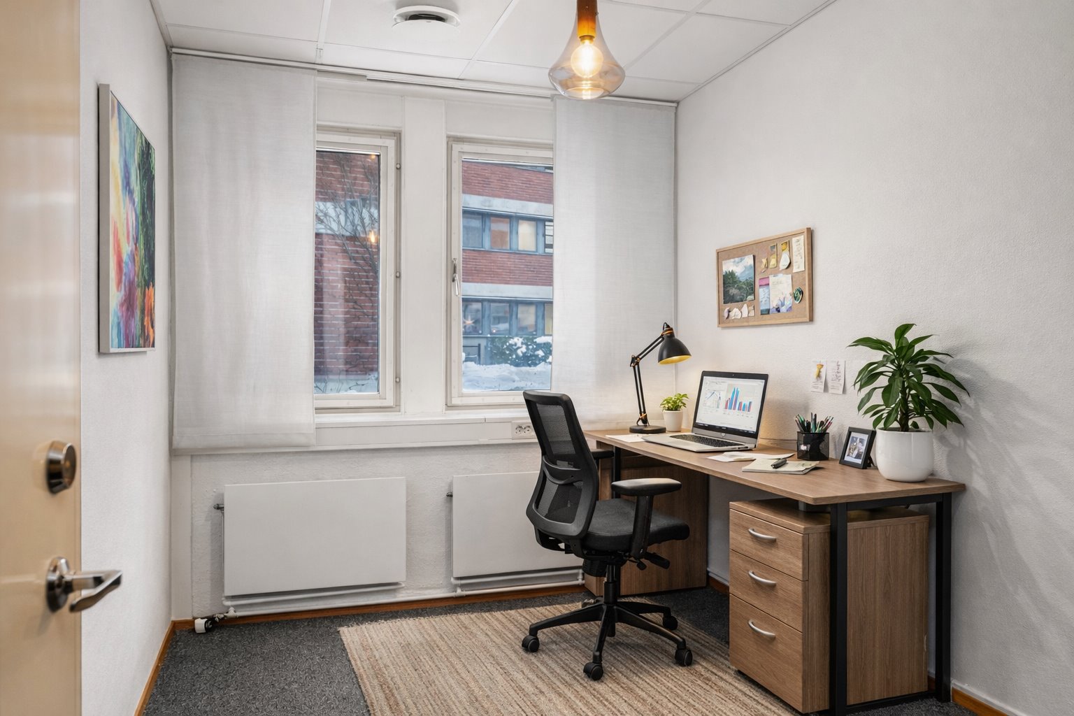 Ljust kontorsrum med fönster