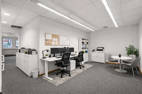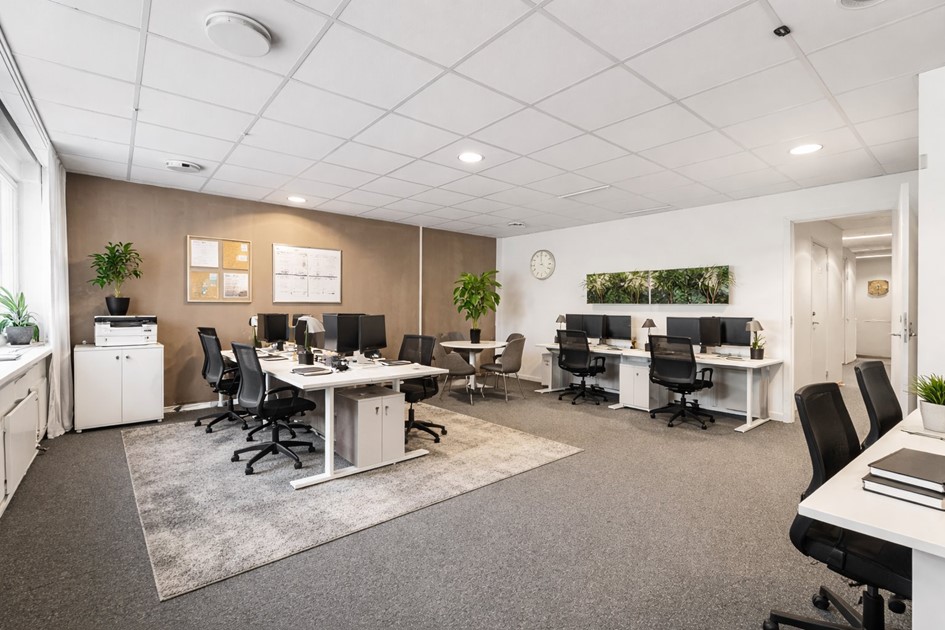 Större kontorsrum med flexibel möblering