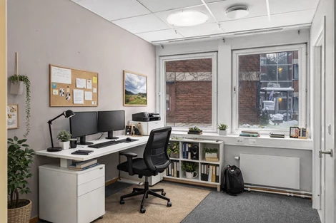 Kontorsrum med två fönster och bra ljus