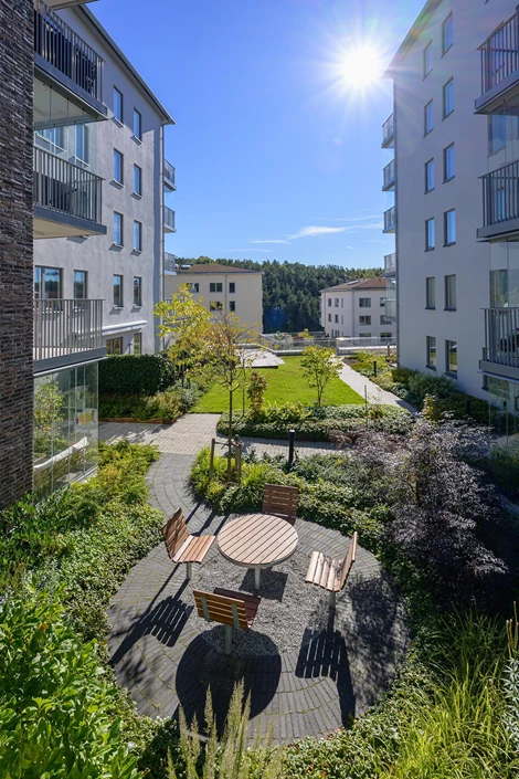 Direkt utanför finns en mysig innergård med lunch- och fikaställe som hyresgästen har tillgång till – perfekt för både personal och kunder. Omgivningen präglas av vacker natur och närheten till Mälaren skapar en trivsam arbetsmiljö.