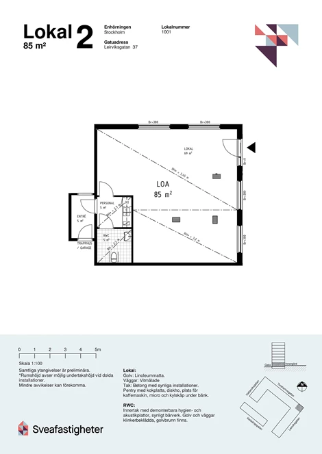 Nu finns möjligheten att etablera din verksamhet i en helt nyproducerad hörnlokal om 85 kvm på Leirviksgatan 37 i Kista – ett område i stark utveckling med ett stadigt inflöde av nya boende och företag. Här skapas optimala förutsättningar att knyta nya kunder och bygga långsiktiga affärsrelationer i ett växande närområde.